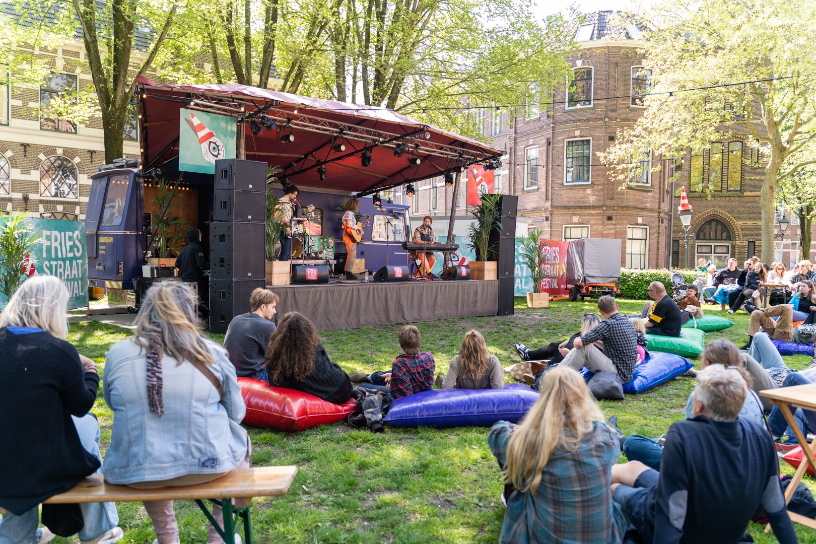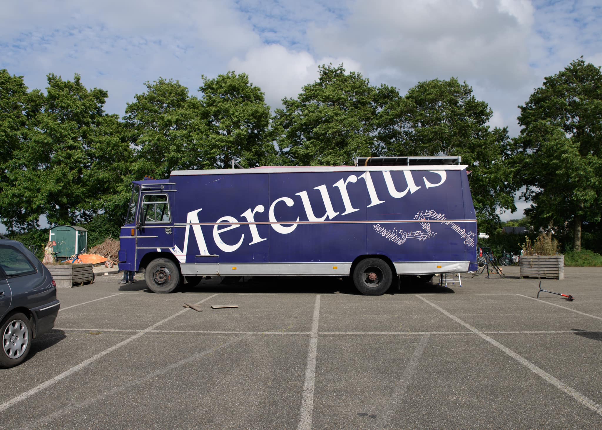 “Een sfeervol en overdekt podium dat wordt opgebouwd vanuit de Mercuriusbus.”